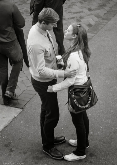 Although the frenzy of the season is upon us... everyone rushing around and focused on that conditioned behavior of "shopping", these two people seemed more focused on each other.